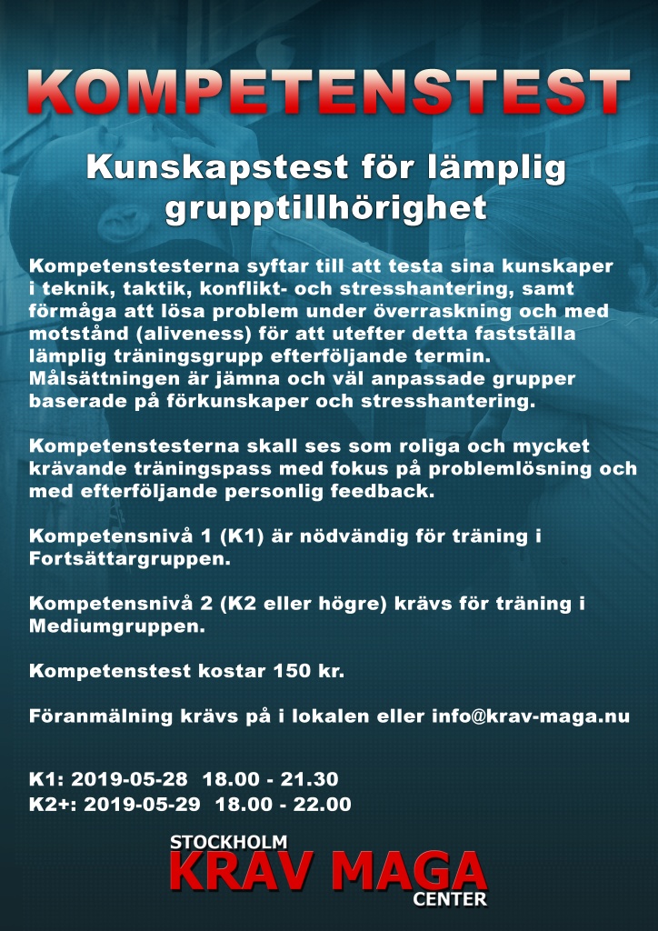 - Onsdag 2019-05-29 kl. 18.00-22.00 för Kompetenstest 2 och uppåt.
